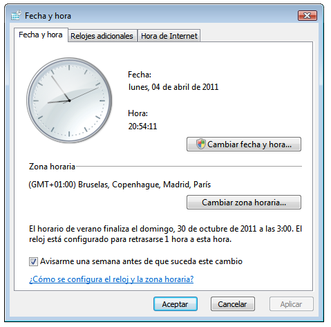 panel de control, seleccionaremos el menú "Reloj, idioma y región"